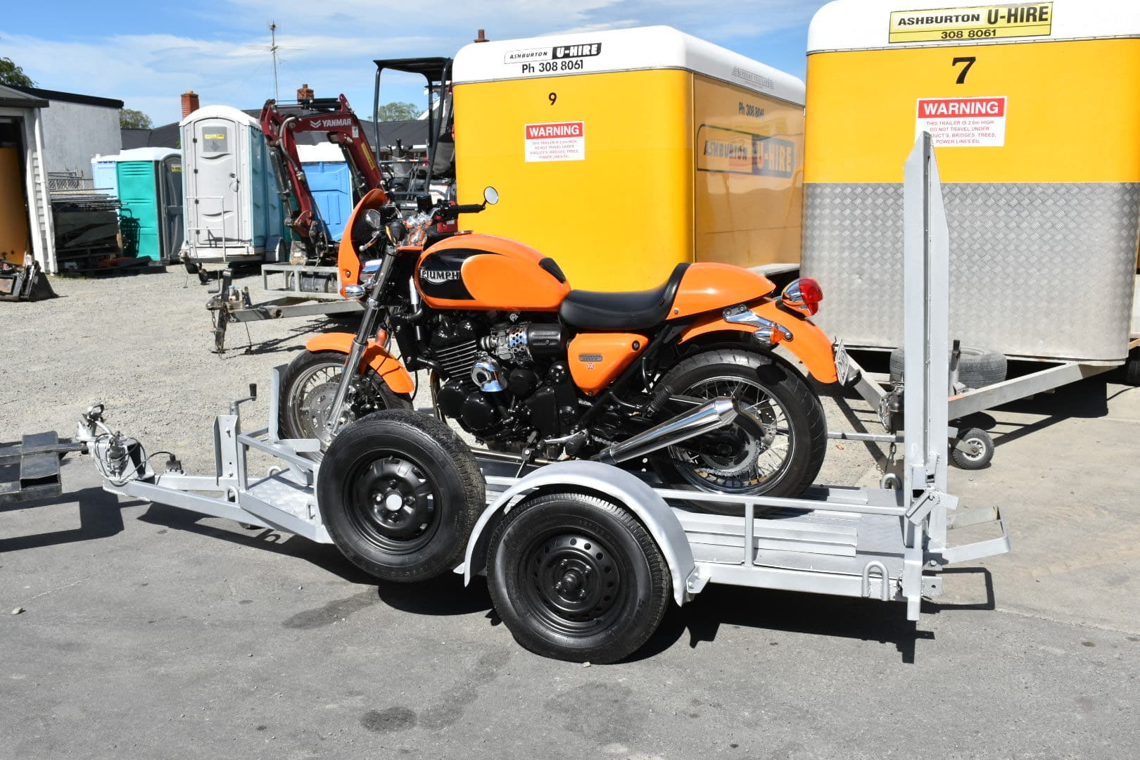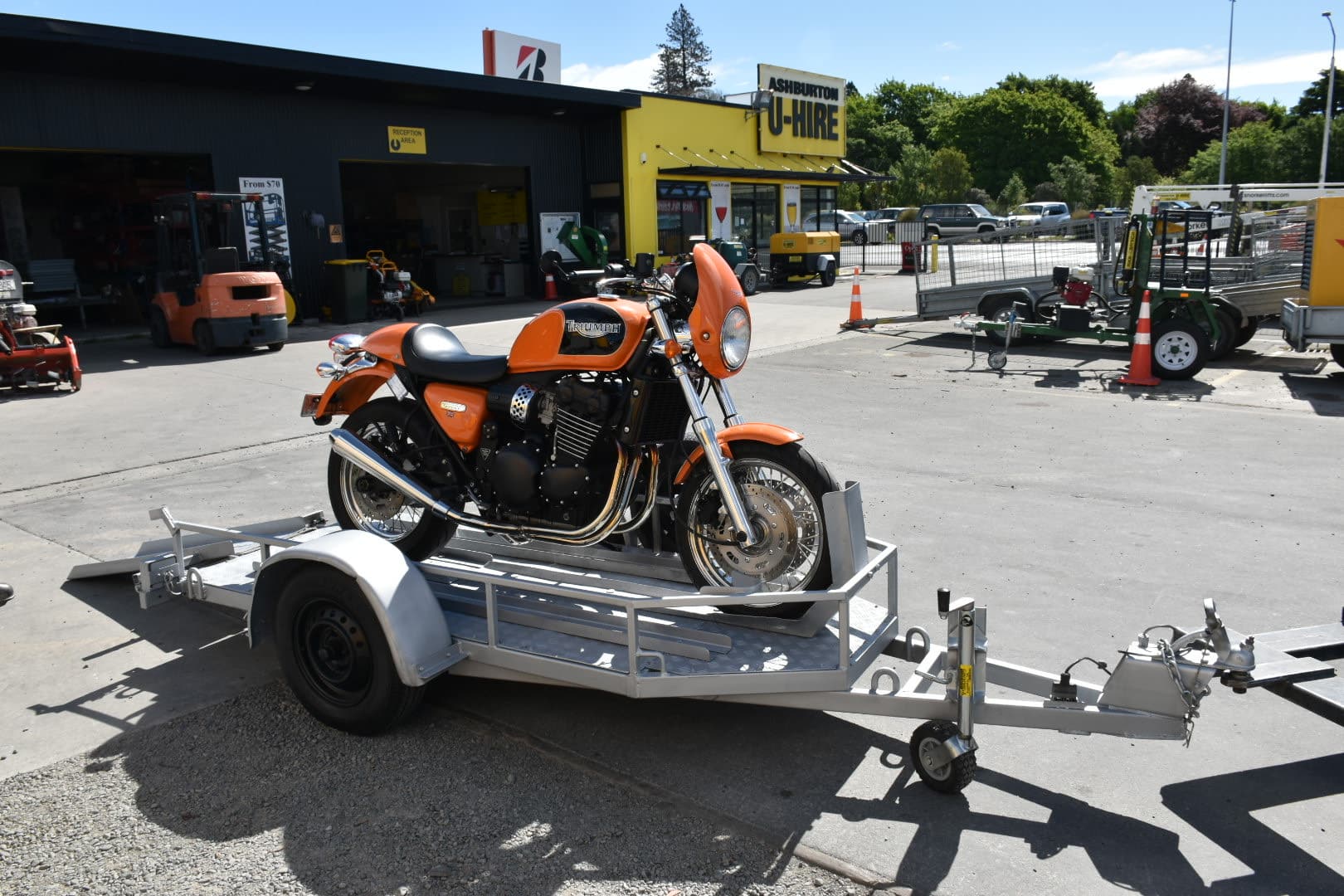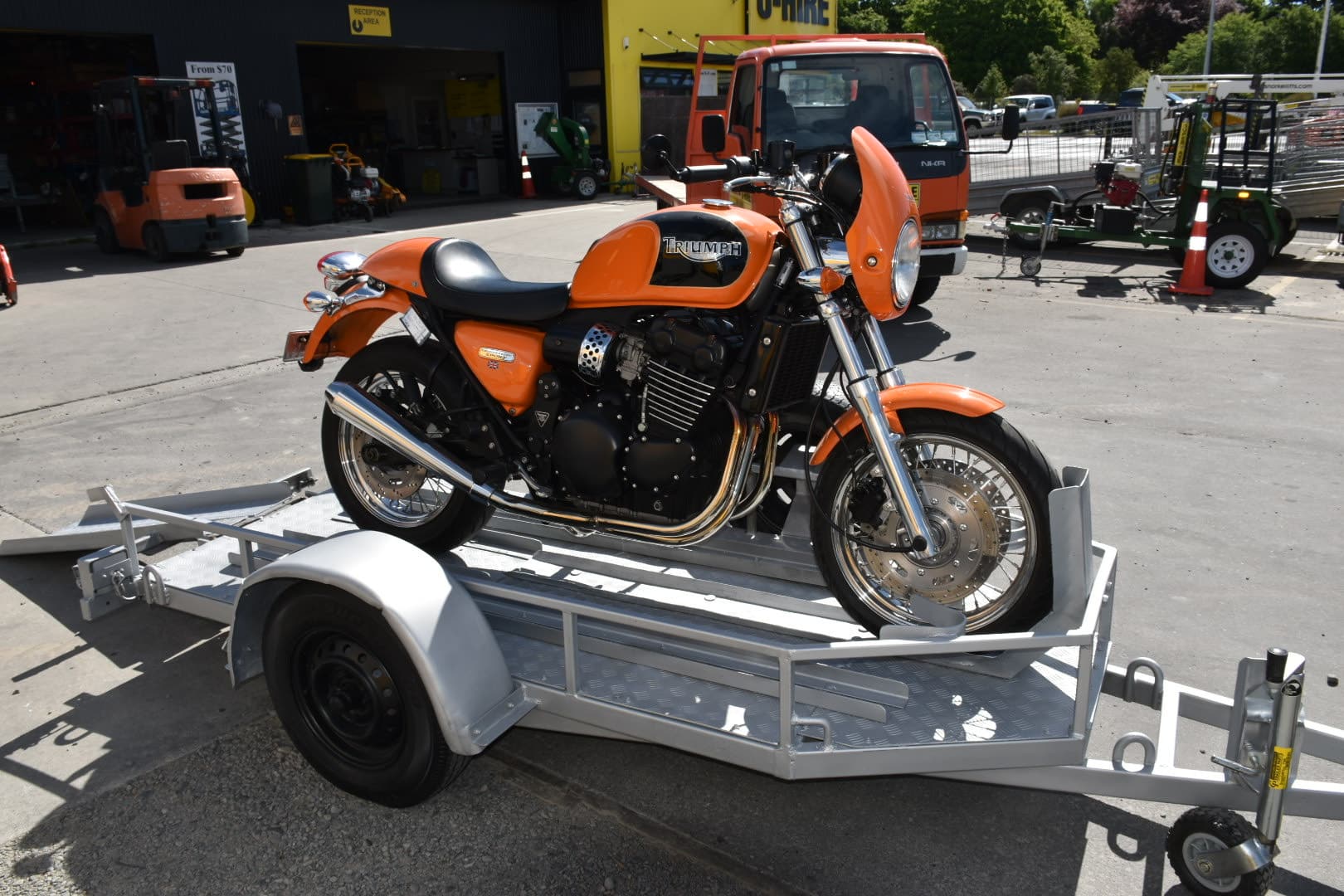 The motorbike trailer is designed for safely transporting your bike with ease. With fold-down ramps at the rear, loading and unloading is quick and hassle-free. Suitable for both road and gravel bikes, it features multiple tie-down points for added security and a front wheel chock to keep your bike stable in transit. Perfect for riders heading to the track, events, or weekend adventures, it provides a smooth and secure way to move your motorbike.